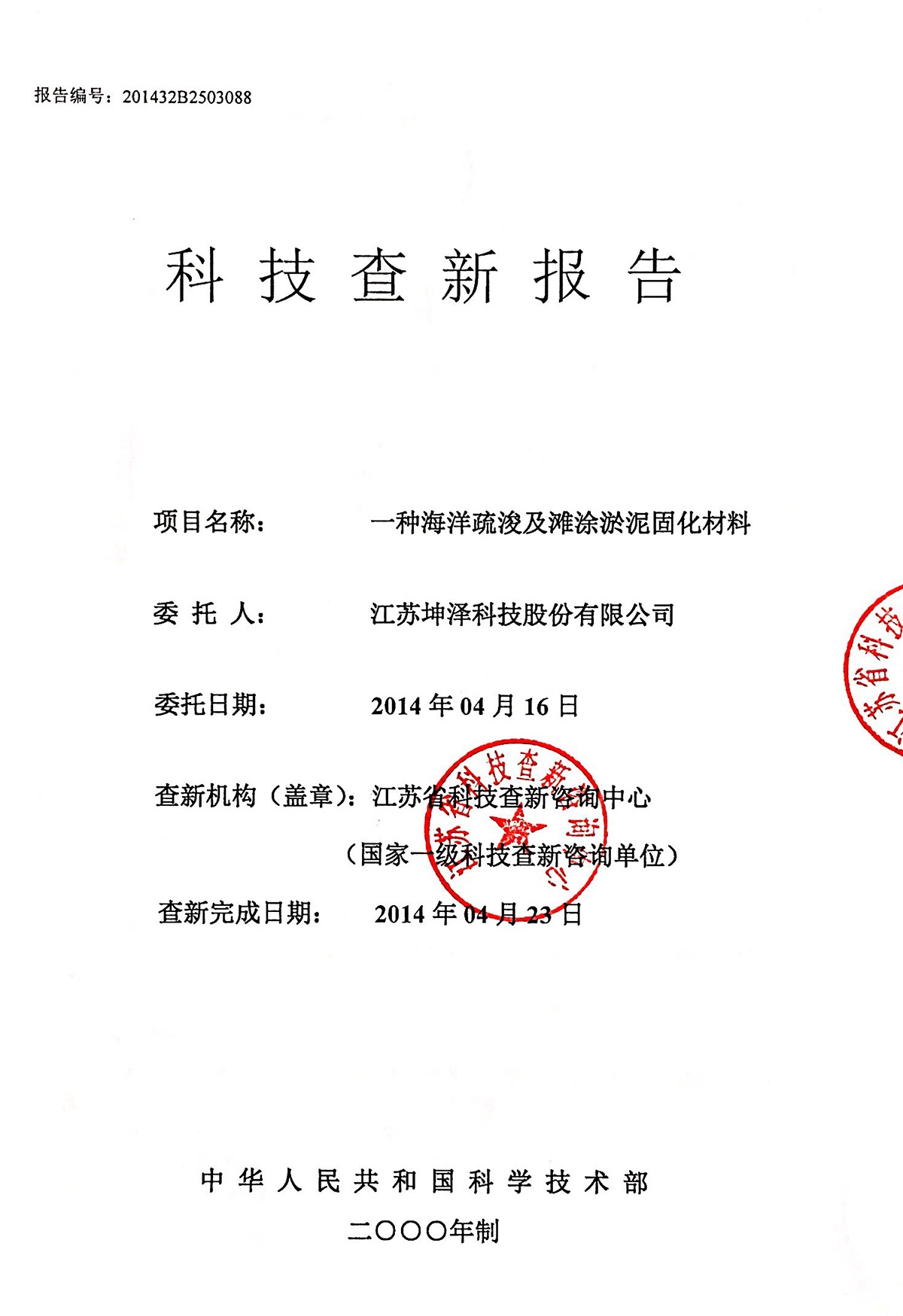 公司设有“南京(坤泽)淤泥资源化及产业化工程技术研究中心”和“连云港(坤泽)淤泥软基固化工程技术研究中心”,拥有多项专利,覆盖了固化剂、固化土产品以及施工工艺及专有生产和施工设备。